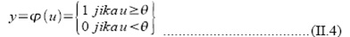 Seperti telah disebutkan pada bagian sebelumnya, fungsi aktivasi adalah fungsi yang mentransformasikan nilai penjumlahan menjadi sebuah nilai yang dapat diproses lebih lanjut. Terdapat beberapa fungsi aktivasi yang umum digunakan, yaitu fungsi aktivasi step dan sigmoid.